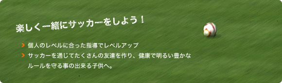 8歳から12歳位までの大切な少年期は、「即座の習得」が可能な「ゴールデンエイジ」と呼ばれており、学習・芸術・スポーツにおいて最大の成長するチャンスです。4歳から7歳位までは「プレゴールデンエイジ」と呼ばれ、ゴールデンエイジに入るための大切な準備期間と言われています。ティックサッカースクールでは、あくまでも個人の成長を助け、素晴らしい大人の選手になる為の技術・個人(グループ)戦術・サッカーに対する理解力(基本)を中心に個人のレベルに合った指導を心がけています。また、「スポーツは少年を大人にする。サッカーは大人を紳士にする」と言う言葉がありますが、ティックサッカースクールでは「大きな声で挨拶が出来る」「友達と協調し合う」「自己主張が出来る」「自分で考えて行動出来る」を理念として指導を行います。